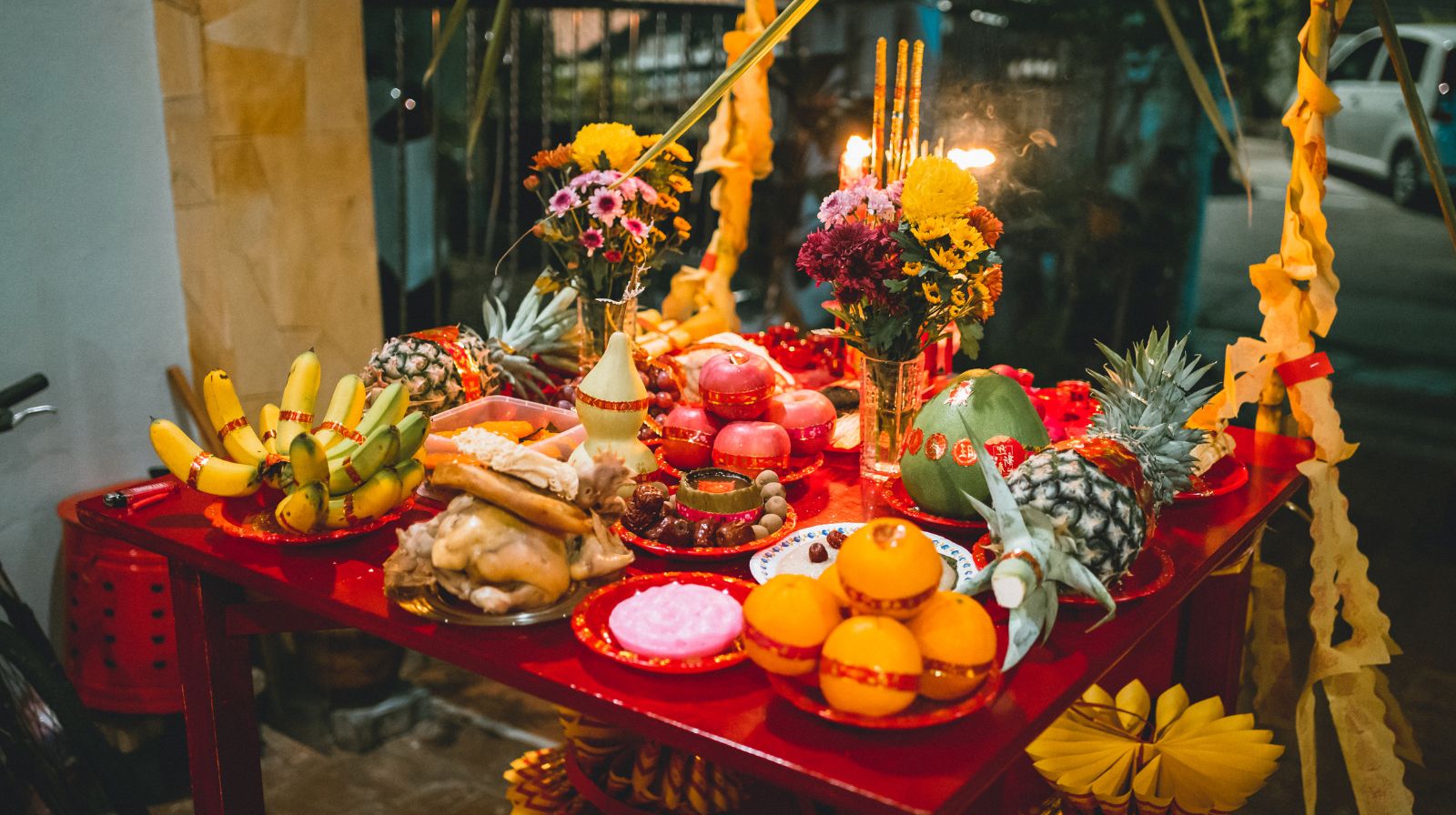 During the New Year period — particularly on the ninth day of the lunar month — his birthday is celebrated with elaborate offerings, especially among Hokkien communities. Families prepare ceremonial tables laden with tea, fruit, cakes, and incense. At midnight, prayers are offered under open skies in acknowledgment of his supreme authority over heaven and earth.