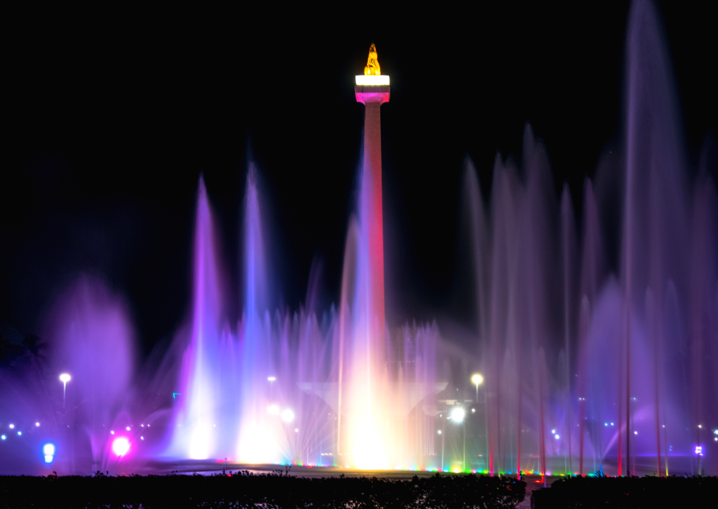 During the Dutch colonial days Merdeka Square was the center of government, known as Koningsplein or the King’s Square. The north side is dominated by the Merdeka Palace once the home of the Dutch Governor Generals, which today houses the office of the President and the cabinet. To the South is the office of Indonesia’s Vice President, Jakarta’s Governor and the provincial parliament building and the American Embassy, and to the West is the National Museum, the Constitutional Court, the Ministry for Culture and Tourism and the Indosat building, Indonesia’s first international telecommunications company. Surrounding the Monument is a park with a musical fountain, enjoyed by the Jakarta public on Sundays for sports and recreation.