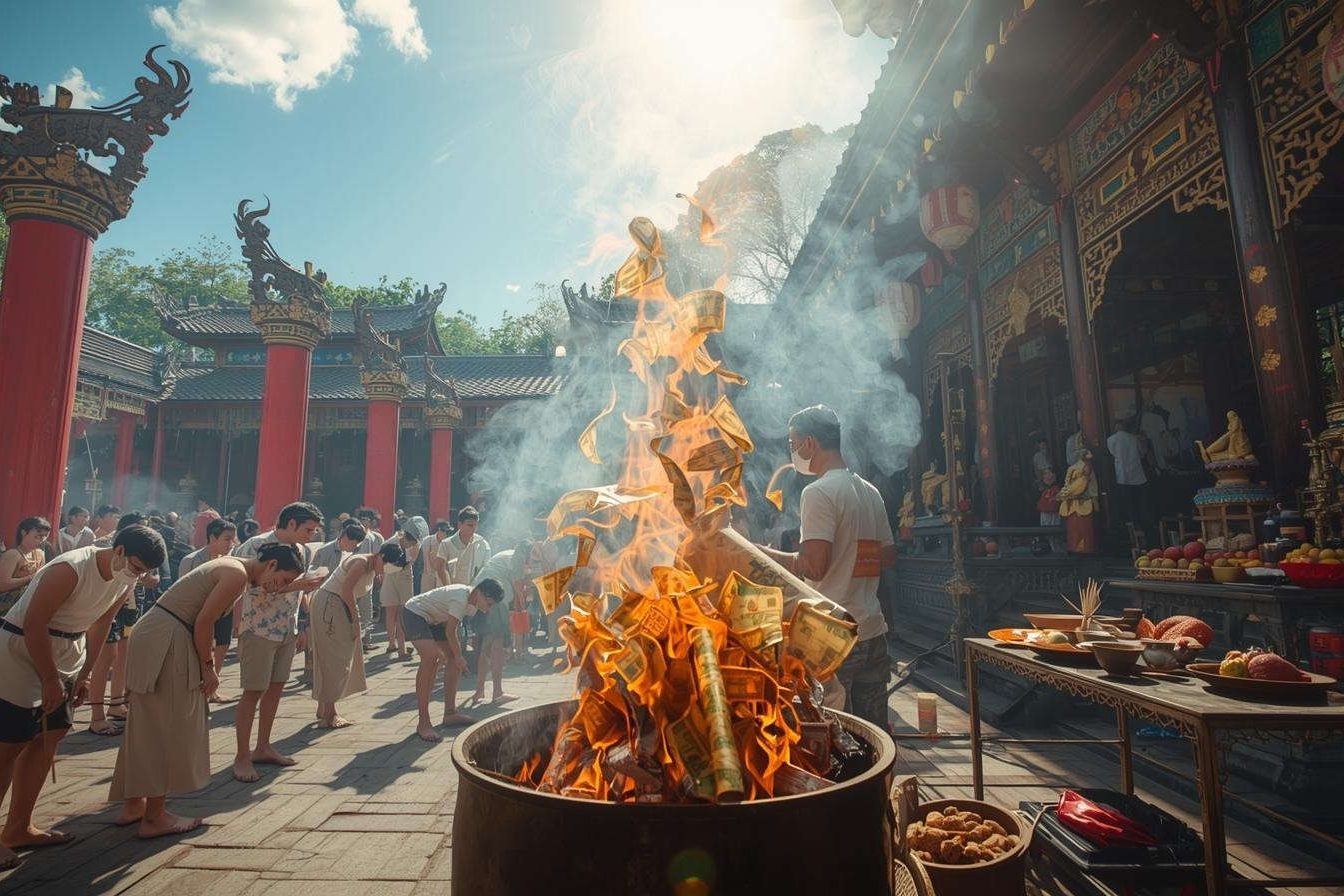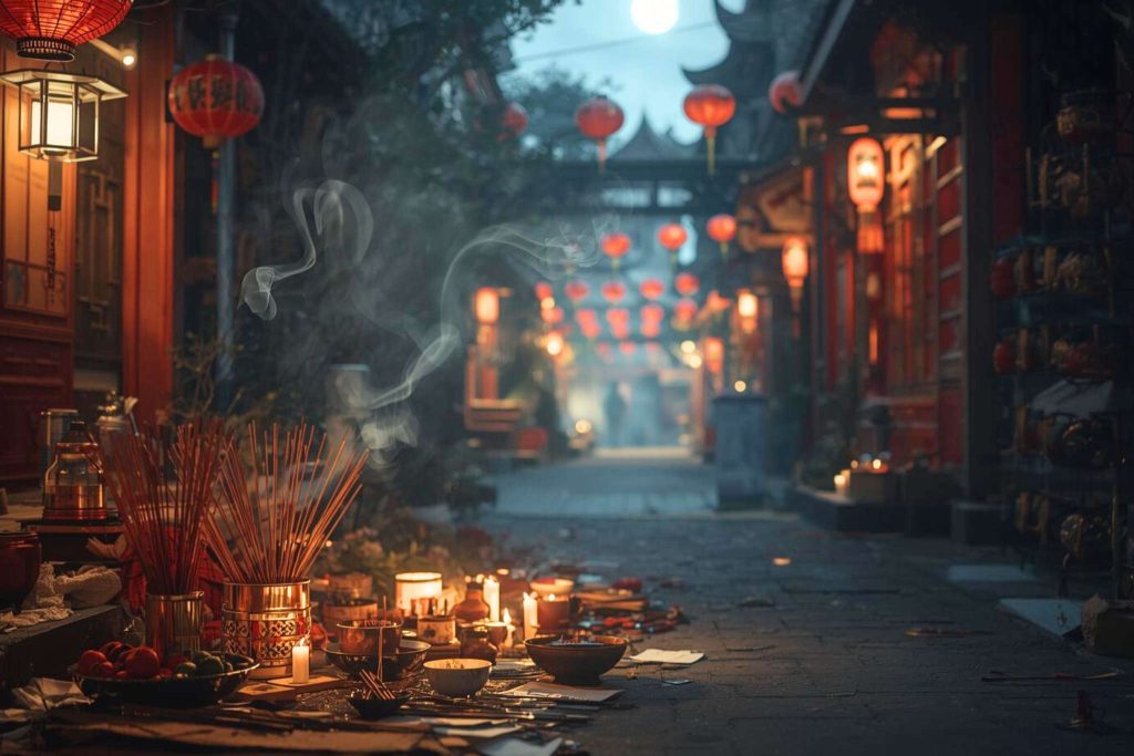 During the Ghost Festival (the 7th month of the lunar calendar), when spirits are said to wander freely, people in China and across Chinese communities around the world will leave offerings of food, joss paper or spirit money, and incense at crossroads or by the roadside. Some folks may also set a rice bowl with chopsticks to invite hungry ghosts to dine, but never, ever look back once you’ve made your offering!