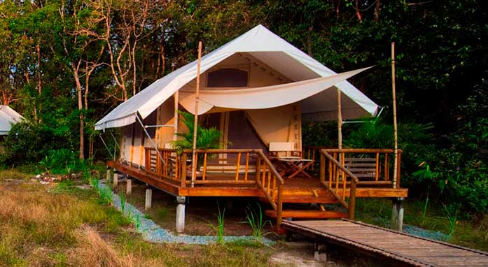 Get there via a scenic boat ride along the Preak Tachan River, leading into the heart of Botum Sakor National Park. Transfers can be arranged from Phnom Penh, Koh Kong, or Thailand.Airport: Phnom Penh Techo International Airport (KTI) - 245 km
